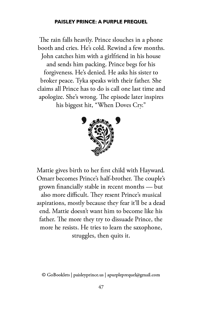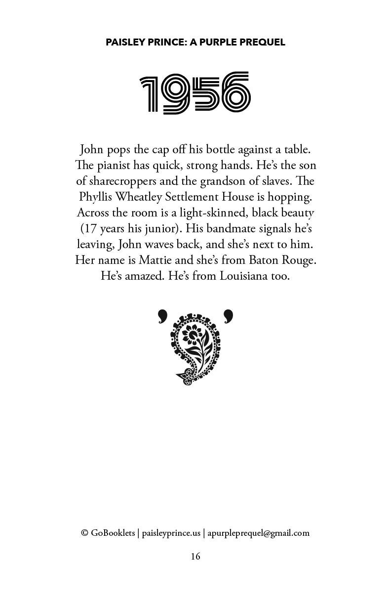 In Paisley Prince, Townsend explores the childhood, adolescence, and early adulthood of American icon Prince Rogers Nelson (1958-2016). The author places his mercurial subject in plain view and doesn’t shy from dramatic reveals. Be a fly on the wall as Prince’s circle forms. This is the otherworldy singer-songwriter, multi-instrumentalist, fashion designer, actor, philanthropist, and record producer at human scale. Includes over 200 short, accessible sketches (~80 words each, click the samples above). Episodes are organized chronologically — spanning two years before Prince’s birth until the announcement that his band The Revolution will film the motion picture Purple Rain.